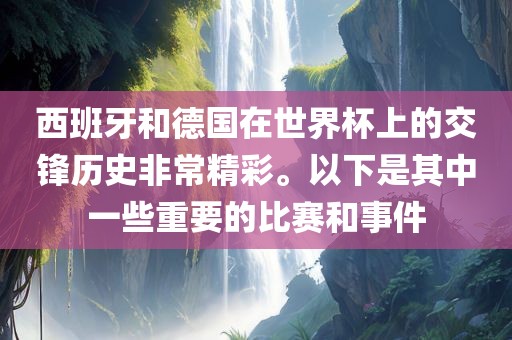 西班牙和德国在世界杯上的交锋历史非常精彩。以下是其中一些重要的比赛和事件