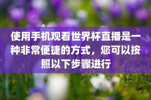 使用手机观看世界杯直播是一种非常便捷的方式,您可以按照以下步骤进行