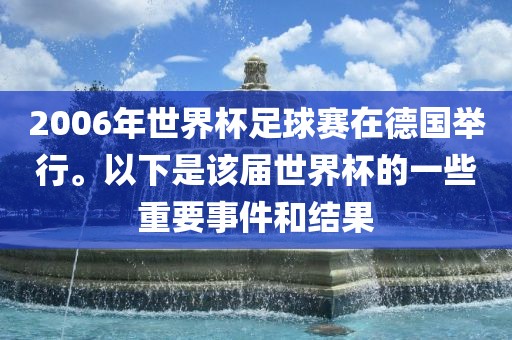 2006年世界杯足球赛在德国举行。以下是该届世界杯的一些重要事件和结果