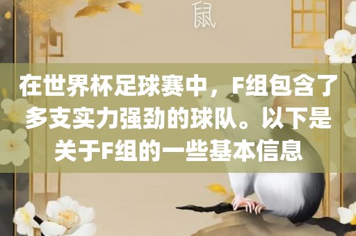 在世界杯足球赛中,F(xiàn)组包含了多支实力强劲的球队。以下是关于F组的一些基本信息