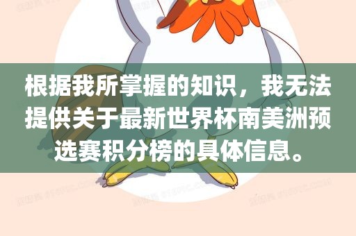 根据我所掌握的知识,我无法提供关于最新世界杯南美洲预选赛积分榜的具体信息。
