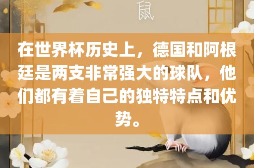 在世界杯历史上,德国和阿根廷是两支非常强大的球队,他们都有着自己的独特特点和优势。