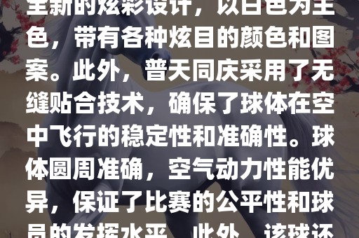 南非世界杯官方用球名为普天同庆,由阿迪达斯公司设计生产。该球以白色为主色,采用炫彩设计和无缝贴合技术,灵感来源于南非的标志性颜色和国旗图案。球体圆周准确,空气动力性能优异,确保了比赛的公平性和球员发挥水平。内置传感器技术可记录比赛精彩瞬间。普天同庆是一款设计精良、性能卓越的足球。