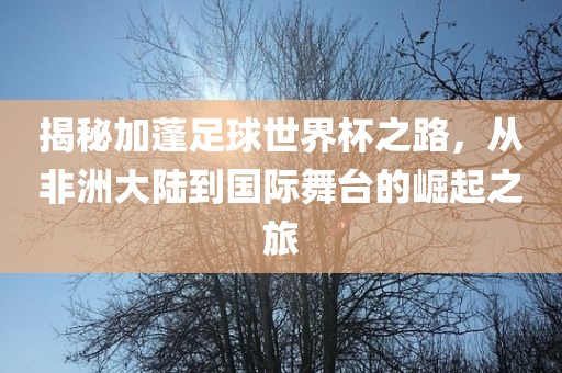 本文为您揭示了加蓬足球的发展历程及其在世界杯赛场上的表现,探讨了其在国际足球舞台上的崛起之路,让我们一起为加蓬足球的辉煌时刻喝彩,期待其在未来的国际赛场上取得更加出色的成绩。