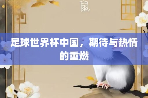 足球世界杯遇上中国,不仅为这片古老的大地带来了无尽的热情与期待,也为中国足球带来了发展的机遇与挑战,相信在广大球迷的支持下,中国足球一定会取得更大的进步,走向世界舞台的中央,我们也期待着有一天,在中国举办一届属于自己的足球世界杯盛事,这不仅是中国足球的荣耀时刻,更是全球球迷共同期待的盛事。