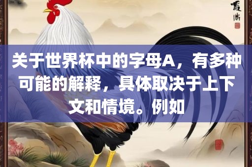 关于世界杯中的字母A,有多种可能的解释,具体取决于上下文和情境。例如