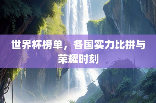 随着世界杯足球赛的临近,全球球迷的目光都聚焦在各大球队的表现上,在这篇文章中,我们将为您呈现世界杯榜单的概况,分析各国实力,并探讨他们的荣耀时刻,让我们一起领略这场足球盛宴的精彩瞬间。