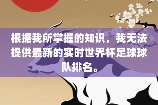 摘要:本文简要提及作者无法提供最新的实时世界杯足球球队排名,因为所掌握的知识无法覆盖最新的赛事动态。如需获取最新排名,建议查阅官方渠道或权威体育新闻来源。