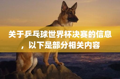 关于乒乓球世界杯决赛的信息,以下是部分相关内容