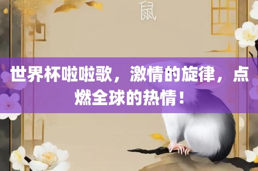 随着世界杯足球赛的临近,全球球迷的热情持续高涨,在这个充满激情的赛场上,除了球员们的精彩表现,世界杯啦啦歌也扮演着重要的角色,这些歌曲以其独特的节奏和激情的旋律,点燃了球迷们的热情,成为了世界杯不可或缺的一部分,本文将带你了解世界杯啦啦歌的发展历程、特点以及它们如何影响世界。