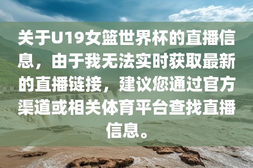 关于U19女篮世界杯的直播信息,由于我无法实时获取最新的直播链接,建议您通过官方渠道或相关体育平台查找直播信息。