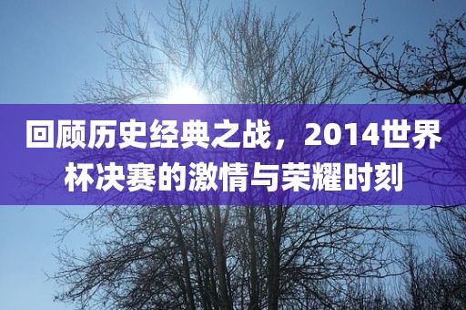 回顾历史经典之战,2014世界杯决赛的激情与荣耀时刻