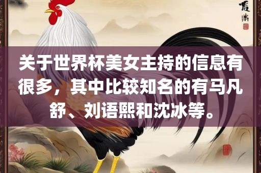 关于世界杯美女主持的信息有很多,其中比较知名的有马凡舒、刘语熙和沈冰等。