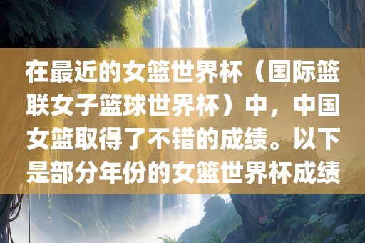 在最近的女篮世界杯(国际篮联女子篮球世界杯)中,中国女篮取得了不错的成绩。以下是部分年份的女篮世界杯成绩