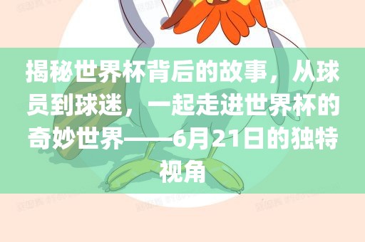 摘要:本文带你走进世界杯背后的故事,从球员到球迷,共同探寻这一全球盛事的奇妙世界。6月21日的独特视角,揭示世界杯的种种精彩与感动。跟随我们的脚步,一起感受足球的魅力,体验这场充满激情与梦想的盛宴。
