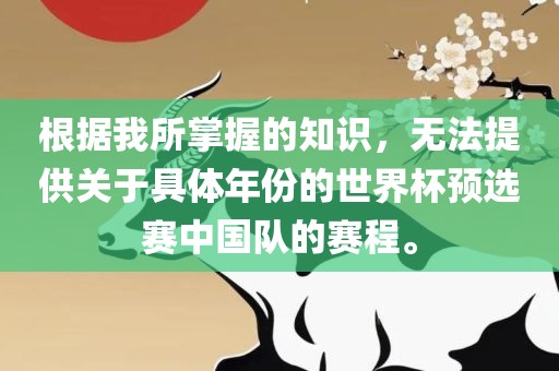 转载请注明来自金炬实业股份有限公司,本文标题:《根据我所掌握的知识,无法提供关于具体年份的世界杯预选赛中国队的赛程?!?/a>