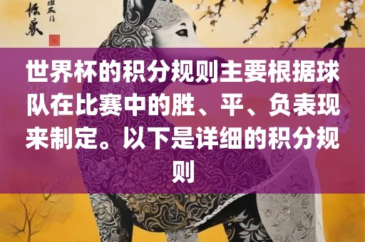 世界杯的积分规则主要根据球队在比赛中的胜、平、负表现来制定。以下是详细的积分规则