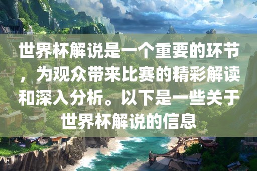 世界杯解说是一个重要的环节,为观众带来比赛的精彩解读和深入分析。以下是一些关于世界杯解说的信息