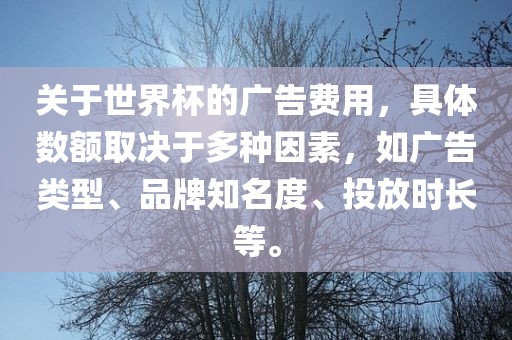 关于世界杯的广告费用,具体数额取决于多种因素,如广告类型、品牌知名度、投放时长等。
