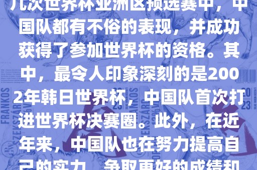 中国队在世界杯亚洲区预选赛中表现出色,成功晋级世界杯决赛圈。在多次预选赛中表现不俗,并获得了参加世界杯的资格。特别是在2002年韩日世界杯,中国队首次打进决赛圈。近年来,中国队实力提升,具备冲击世界杯出线名额的潜力和实力。