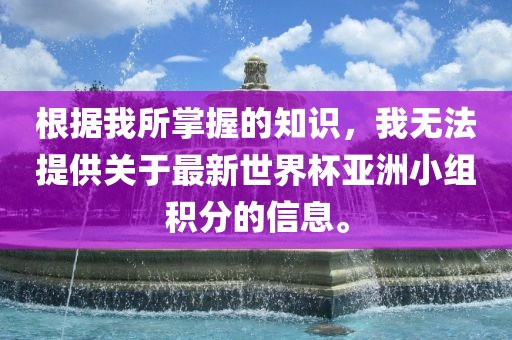根据我所掌握的知识,我无法提供关于最新世界杯亚洲小组积分的信息。
