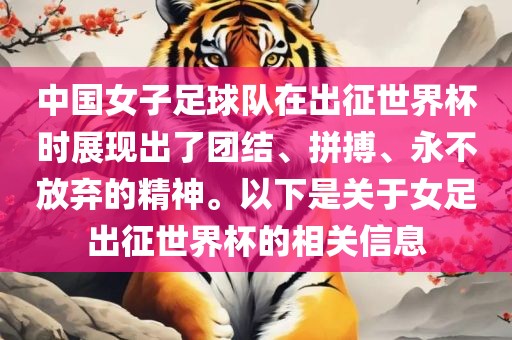 中国女子足球队在出征世界杯时展现出了团结、拼搏、永不放弃的精神。以下是关于女足出征世界杯的相关信息
