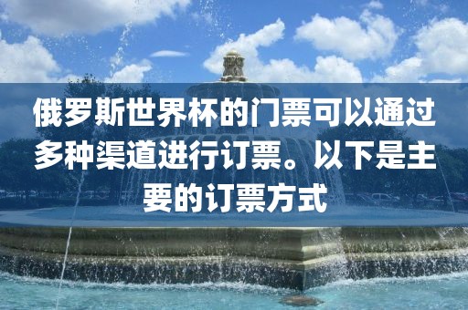 俄罗斯世界杯的门票可以通过多种渠道进行订票。以下是主要的订票方式