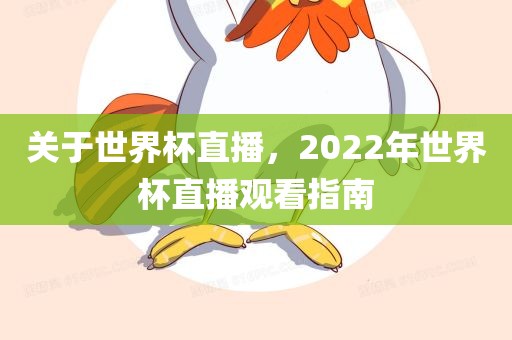 摘要:,,关于世界杯直播,本文将为你提供详尽的观看指南。在即将到来的2022年世界杯期间,想要观看精彩纷呈的比赛直播,这篇指南将为你提供全面的信息和建议。从赛事时间表到直播平台选择,从高清画质设置到实时互动体验,本文都将一一介绍,助你轻松享受世界杯盛宴。